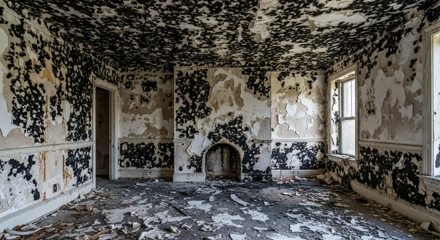 Apparition de tâches noires, vertes ou blanchâtres sur les murs, souvent accompagnées d'odeurs de renfermé.